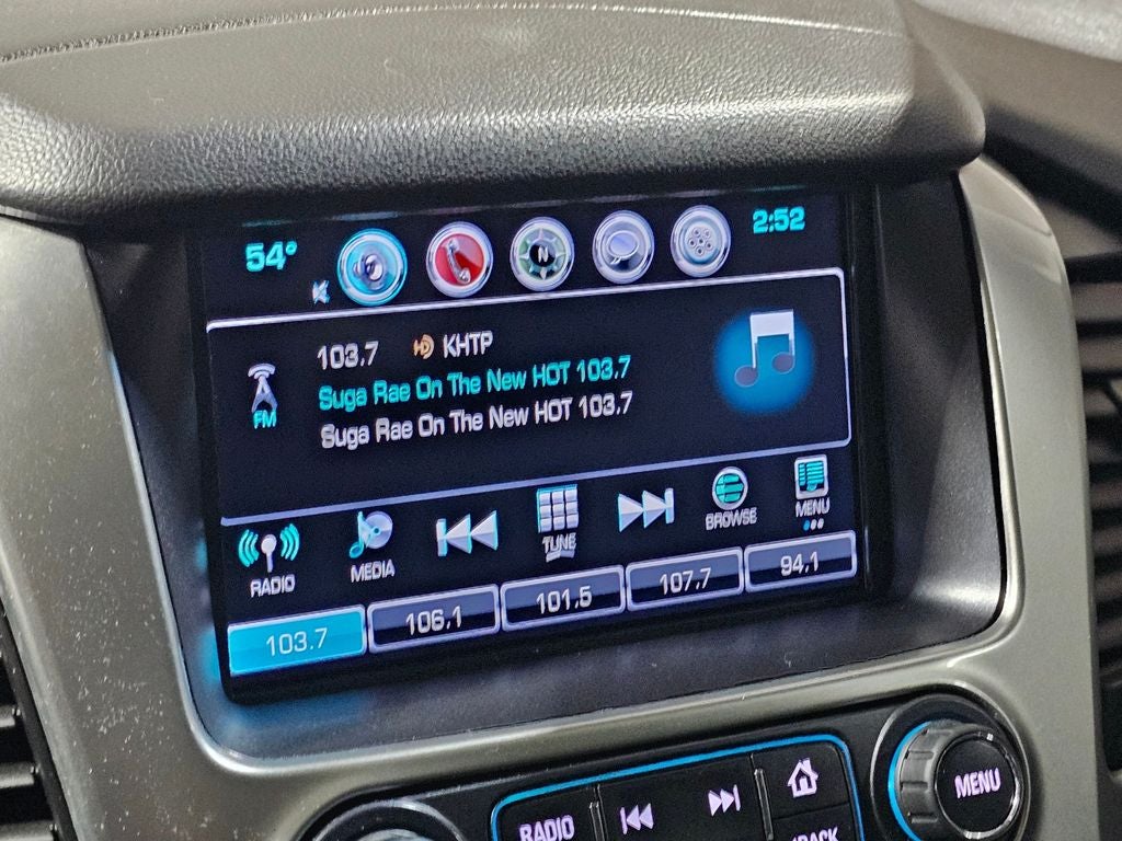 - Audio system, Chevrolet MyLink Radio with Navigation and 8" diagonal color touch-screen AM/FM stereo, seek-and-scan and digital clock, includes Bluetooth® streaming audio for music and select phones; voice-activated technology for radio and phone; featuring Apple CarPlay capability for compatible phone; includes 5 USB ports and 1 auxiliary jack