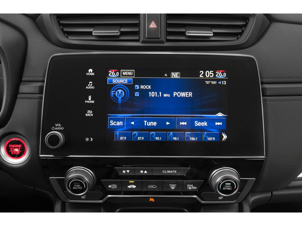 - Radio: AM/FM Audio System w/4 Speakers -inc: 160-Watts, 5-inch color LCD screen, Bluetooth® streaming audio and HandsFreeLink, Pandora compatibility, Radio Data System (RDS), Speed-Sensitive Volume Control (SVC), USB audio interface w/1.0-amp port in center console and 12-volt power outlets (front and center console)
